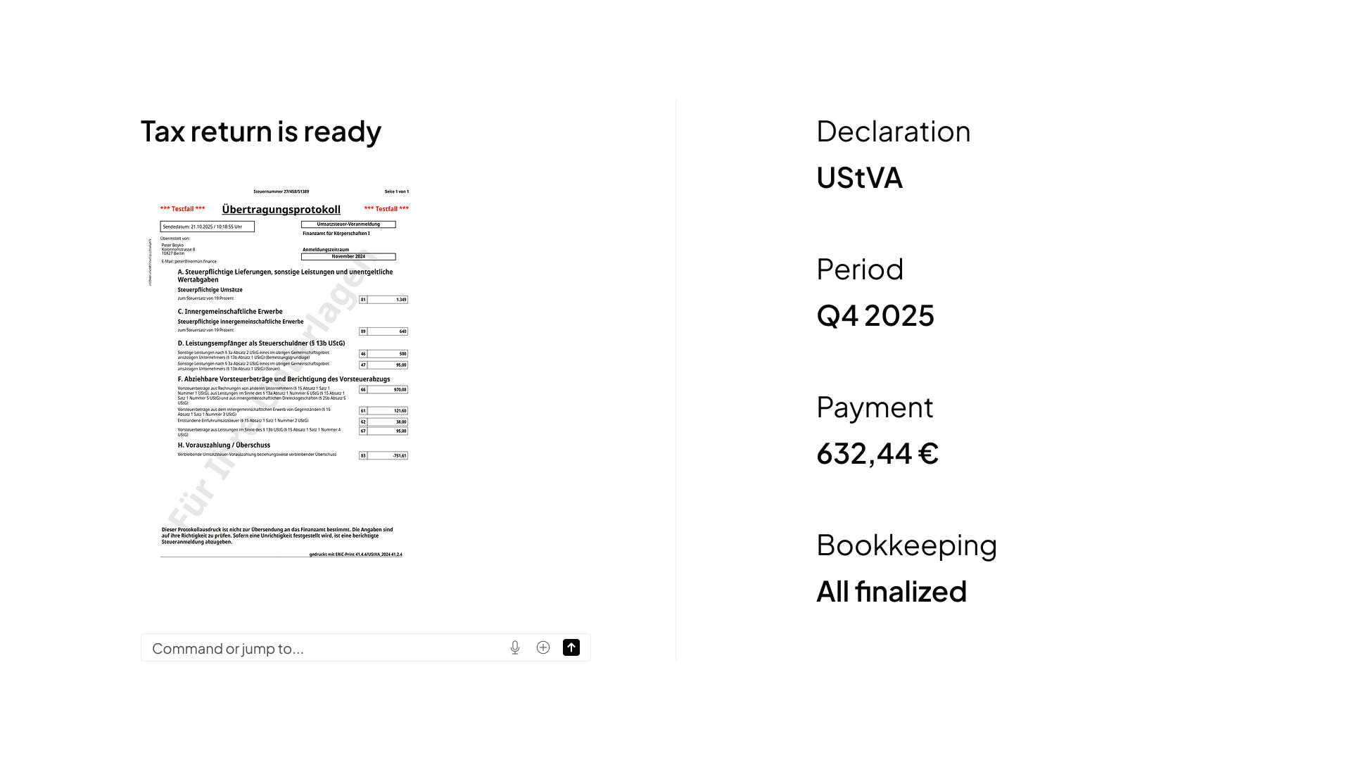 All declarations are already filled out. Submit directly to the tax office.