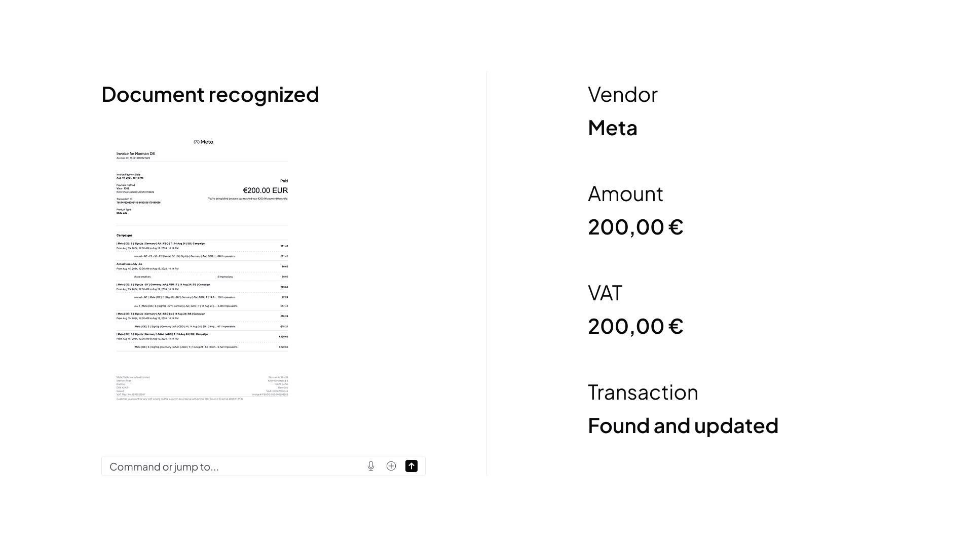 Norman detects VAT, auto-match expenses, and accelerates invoicing.